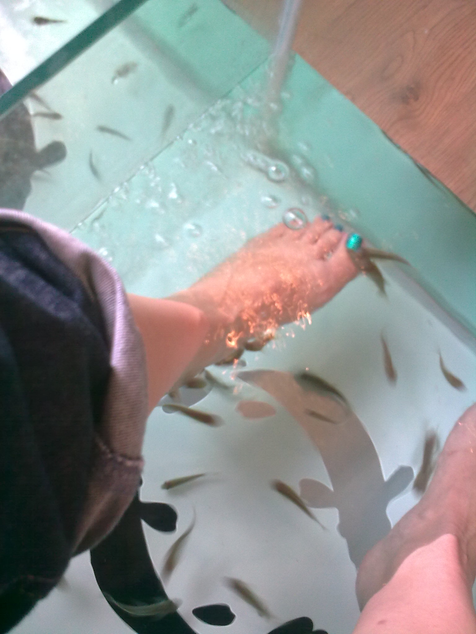 On Thursday had my feet gently hoovered by a shoal of little fish called Garra Rufa. They are a species of Turkish fish that seems to like nothing better than to nibble on human feet, for whatever reason.