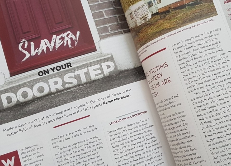 But what can you practically do about modern-day slavery? Well, there are some ideas in the article, and you can get a free copy of the magazine here. But if you’re not going to do that, try visiting the #slavefree page at International Justice Mission to find out about slavery in the supply chains of products you buy, or learn to spot the signs over on the Modern Slavery Helpline site. You can also donate to anti-slavery charities such as Anti-Slavery.org and Exodus Cry (to name just two).