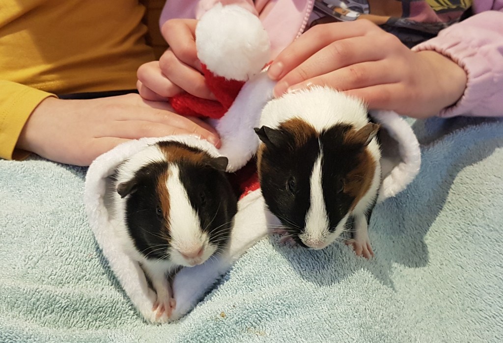 My budgie Roland moved cage this year to bigger digs, and on Christmas morning, two adorable guinea pigs, Squiggles and Socks, arrived to join the family!