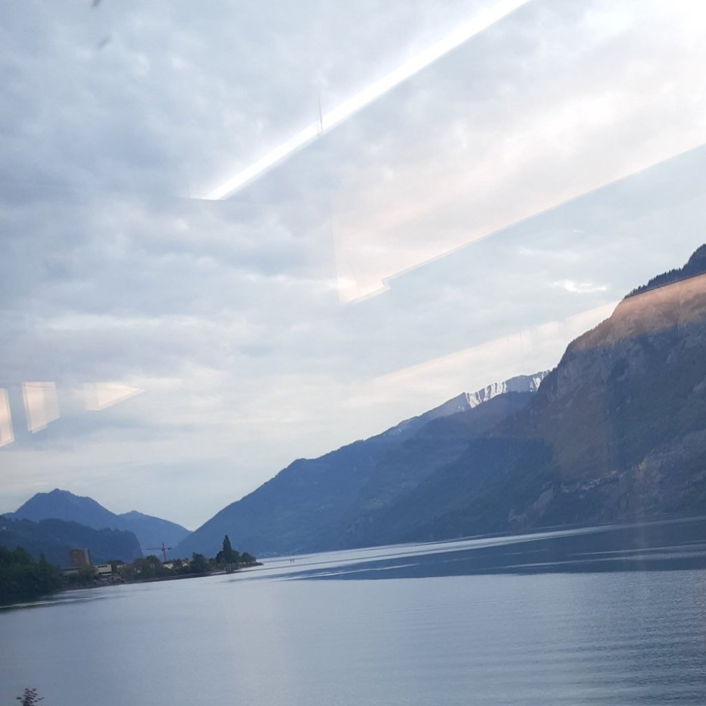 The trip from Tirano ran right along the side of Lake Como, which looked lovely and very resorty, but I struggled to get a decent photo because the train moved so fast and there was always a tree or lamppost or telegraph pole in the way, or we suddenly went into a tunnel. You see so many fleeting things from a train. It reminds me of that poem by Robert Louis Stevenson. You’ll just have to imagine red-tiled, wooden-shuttered houses clinging to the shore above a lake that shades from deepest petrol to palest silver, while rugged hills tower on the opposite side and swift boats throw up wakes of white foam – or you could go and see it for yourself.