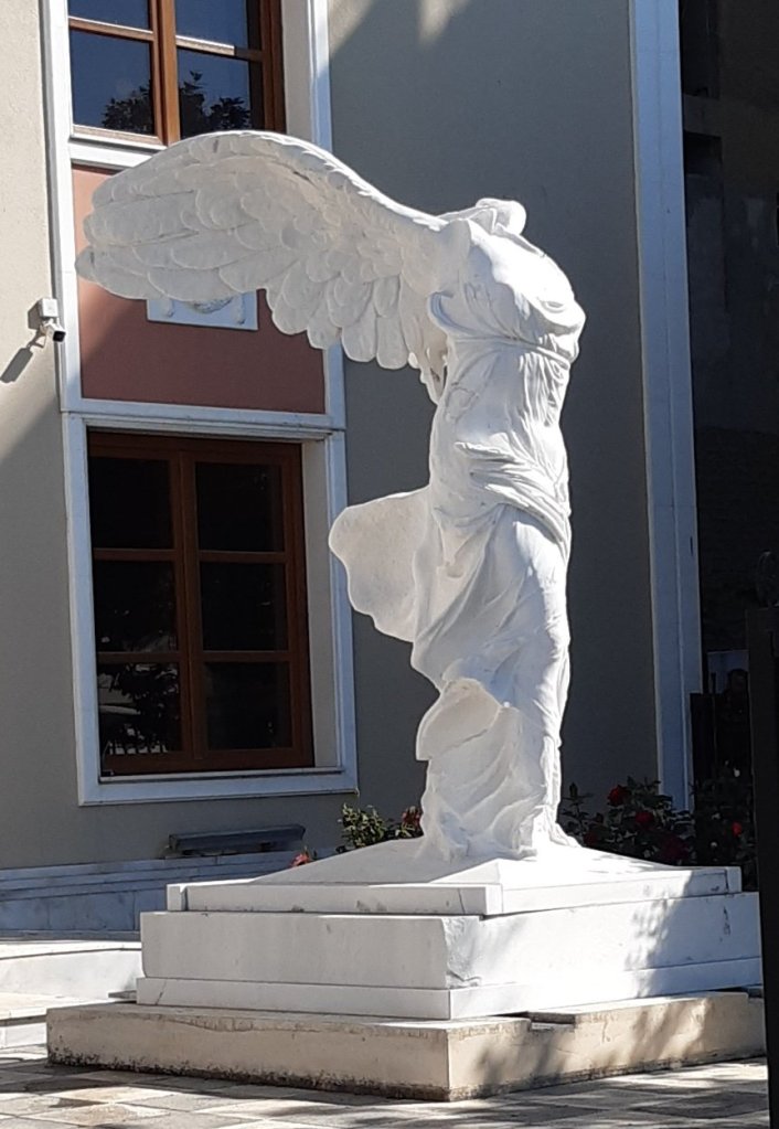Fortunately there was coffee on the ferry. It was less windy this time and there were no schoolchildren. In Alex, wandering around looking for a nice cafe, I saw two more representations of the Nike – and I’m not even on Samothrace any more! Apparently Alexandroupoli (despite the name) is actually quite a young town, founded by the Turks in the 19th century, so I suppose it has to borrow its history as well as its name.
