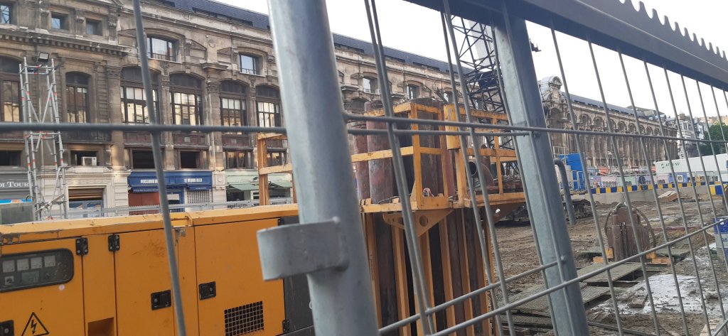 The final train made it to Brussels only a bit late. Google insisted there was a bus to my hotel, but she also insisted it was down a narrow one-way street going the wrong way, and with no bus stops on it. So I walked through the Arab quarter, where groups of men drinking tea on the pavement gave me strange looks, as if the only reasonable thing to do on a pavement is sit at a table and drink tea, not walk, and past endless roadworks. They seem to be digging up the whole section near the Midi-Zuid train station.