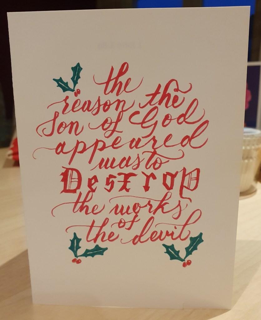I finished up with calligraphy last year, although the skills still come in handy, but it was this year by the time my ‘reward’ for learning calligraphy arrived – a very expensive calligraphy pen that you don’t have to dip, as it has an ink reservoir. Unfortunately the ink constantly clogs so you have to unscrew it and fix it almost as often as you would have had to dip a normal one, but at least there are fewer blots. Anyway, you can appreciate my final pointed pen calligraphy piece, and a brush pen card I made this Christmas as a private joke for a friend of my sister’s. Do you think there’s a market for it? 😂