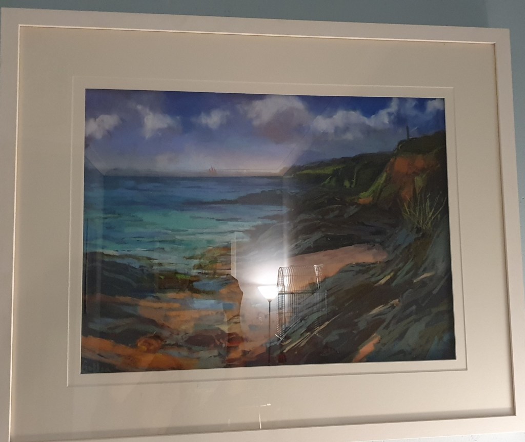 Speaking of which, it’s a different home from last year as I was offered, and accepted, a housing association flat. It’s in a better location and about half the rent I was paying at the last place, which is pretty great. And it means I can put my lovely Lynn Golden seascape on the wall – something I was not prepared to do when I was only allowed to use Command strips. There’s a bit of watery theme here, actually, as the flat is all decorated in blue, grey and aqua, and there are five water-themed paintings or prints up, plus a blind with the design ‘Como Lago’ (Lake Como). It’s funny how you don’t realise how specific your tastes are until they are all condensed into a small flat!