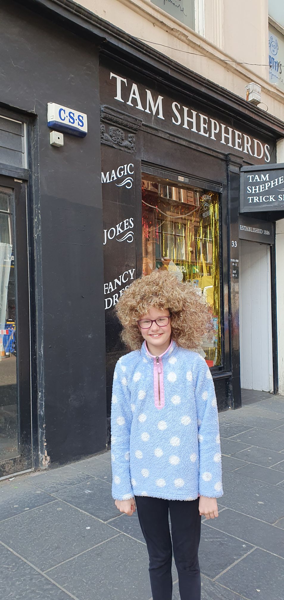 Speaking of which, early in the year I took two of my nieces to use their gift vouchers at Tam Shepherd’s joke shop (Ciara bought a charming wig) and managed to shrink them by the power of Glasgow street art.