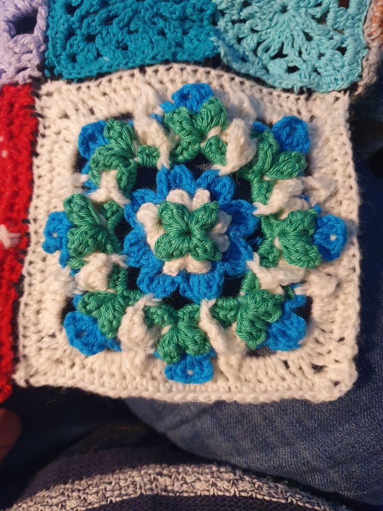 I added a new square to the patchwork blanket, too.