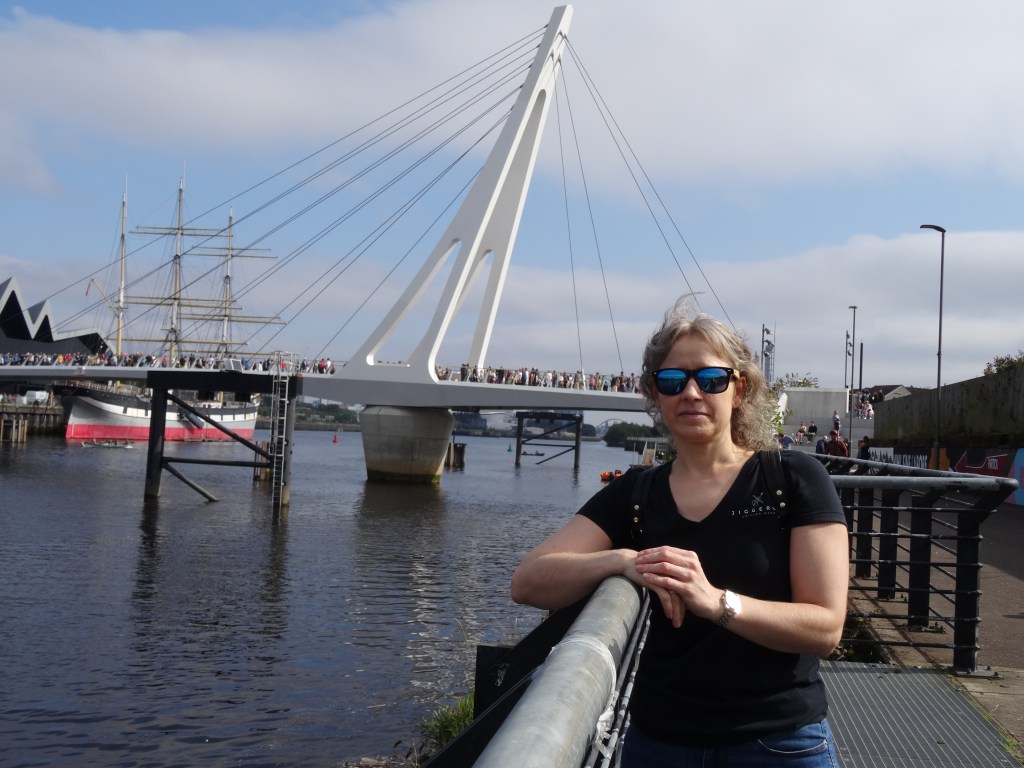 The place was absolutely hoachin’ this afternoon. It will be a lot faster to cross from Partick to Govan when it’s not a festival! Amongst the throng of humanity there was a man taking photos with a much more impressive camera than mine, but he agreed to use my piddly wee camera to take a photo of me. Thank you, Mr Photographer Man!