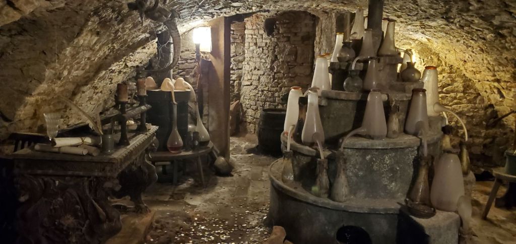 Speculum Alchemiae is a real alchemical laboratory from the 16th century that was sealed off sometime and only discovered after flooding in 2002. When I got there, the final tour was about to start. Daniel, who took the tour, is reminiscent of Richard o’Brian, despite having copious amounts of hair. He was very knowledgeable, with a nicely creepy, heavily accented delivery. There were only three of us on the tour and one of the other women, Anastasia, has a background in Eastern herbalism so she was quite knowledgeable about alchemy too. It was so much fun to be able to chat to people about alchemy who actually know what you’re talking about!