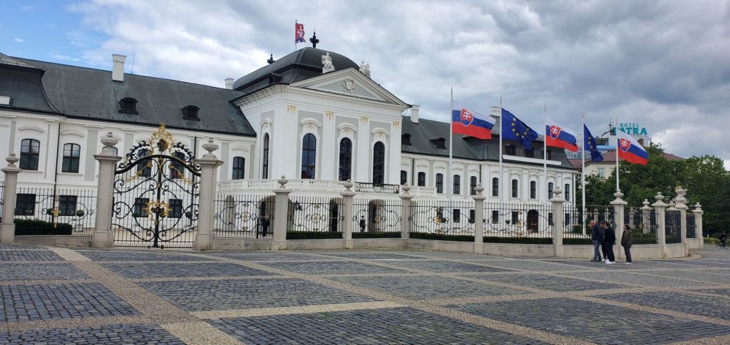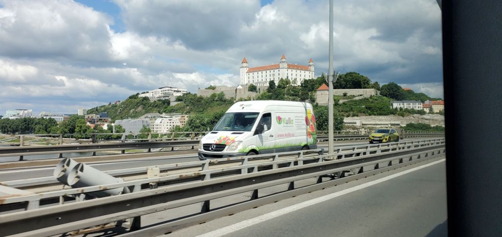I get a nice bit of second breakfast in the OBB first class lounge at the station, then catch my train. There’s no first class, but I’ll cope. It’s less than an hour to Bratislava. When I get there, I have to catch a bus to the other station, where I’ll be departing from, and I want to leave my luggage at the second station. There are self-operated luggage lockers near the entrance but they require €5, and only in €1 or €2 coins. I buy some bake rolls from the kiosk next to the lockers, which probably gets most of its custom in this way, but I still don’t have enough coins. I wonder if the toilets will give change, but on my way to find out, I find a manned left-luggage place tucked away out of sight, where I can pay with a €5 note. They couldn’t have mentioned that at the lockers?