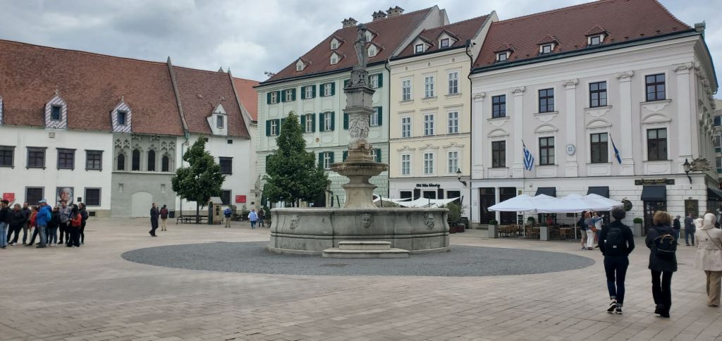 Unencumbered, I head off to check out the old town. Jan at the Absintherie told me that Bratislava was rubbish, but I thought he was probably being unfair because he is from Slovakia. But no, he was right. The part near the station is unprepossessing, as you would expect, with a few sub-Viennese buildings in poor repair interspersed with stinky drains and concrete flyovers. But when I got to the old town, it wasn’t all that either, and apparently the stag and hen do’s that have abandoned Prague have moved to Bratislava instead. There were groups of English blokes in an “Irish” pub, a group of screaming schoolgirls and a group of women with a novelty penis helium balloon. Classy.