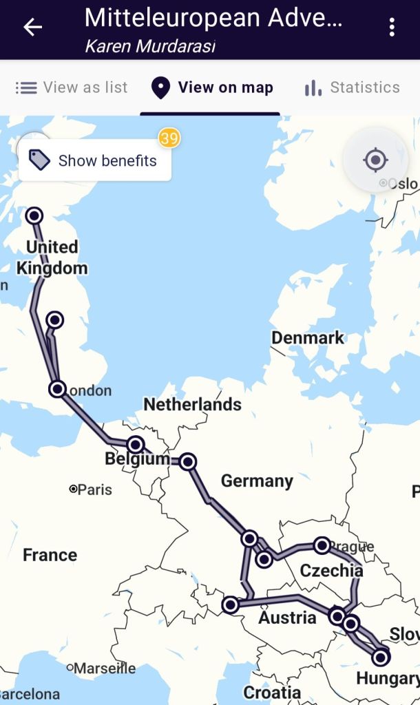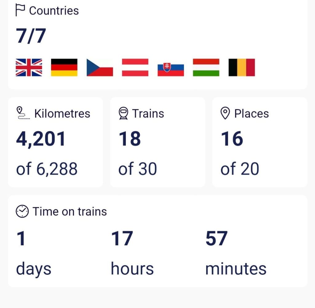 As I will be pulling into Sheffield in a matter of minutes, let me finish this wee series with the map and stats from the Interrail Rail Planner app: