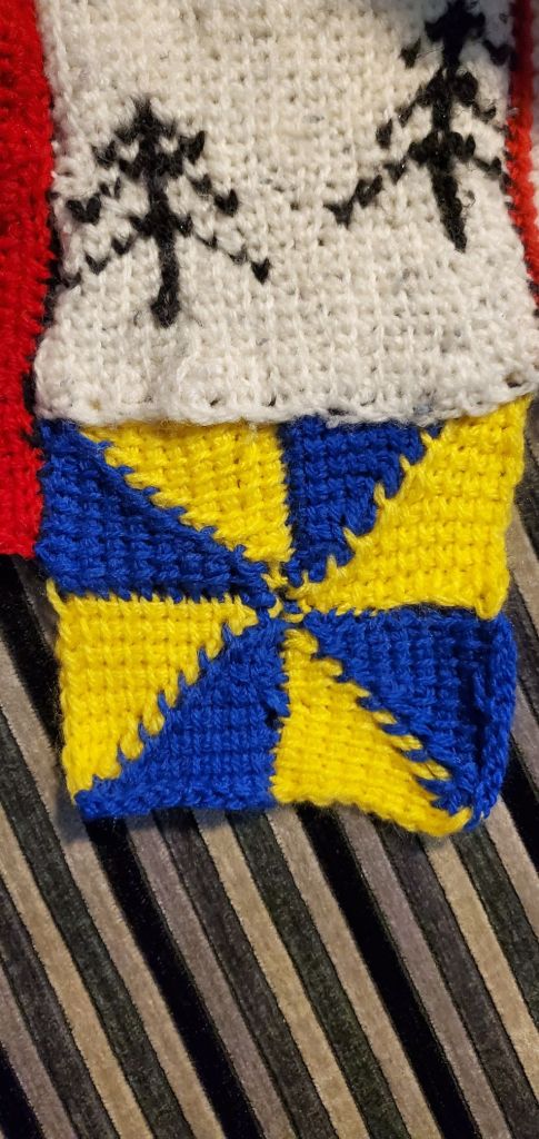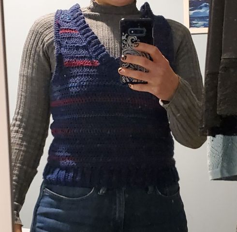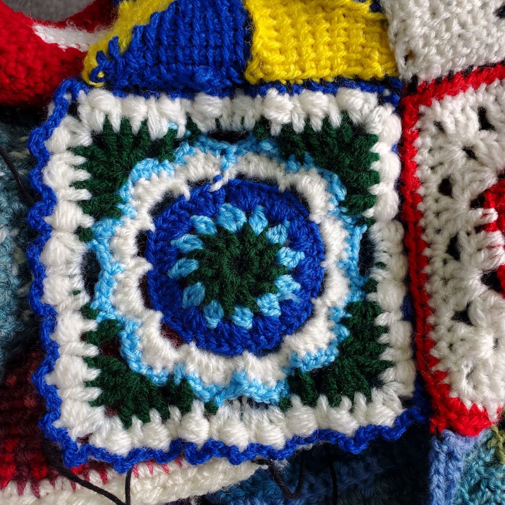 As well as all the sewing (which was mostly from October onward), I did do some crochet and cardmaking, as usual. I didn’t get any figures added to my crochet nativity, but I made myself a nice sleeveless pullover and a few pieces for my patchwork blanket, including a miniature of a baby blanket I made at the start of the year for a baby called Thomas.