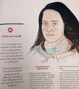 I found the story of Thérèse of Lisieux challenging. The first challenge was learning how to spell her name, of course. But more seriously, her absolute denial of self makes you question your own ‘reasonable’ level of selfishness. When she was dying of a painful illness, those who didn’t know her well thought that she couldn’t be seriously unwell, because she was so uncomplaining. I am not that uncomplaining, to put it mildly.